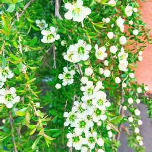 『蜜月』『素朴な強さ』『濃厚な愛』。「蜜月」「濃厚な愛」は、ギョリュウバイを蜜源とするハチミツ「マヌカハニー」に由来するといわれています。仲良く寄り添うように咲く花姿に由来するという説もあります。「素朴な強さ」は、ニュージーランドの先住民族「マオリ族」が古来からギョリュウバイの葉を様々な用途で活用していたことに由来するといわれています。ニュージーランドの国花です。