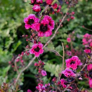 ユリオプスデージー ギョリュウバイ💕 下水道インフラ工事現場の入り口でユリオプスデージーが満開でした🤗💕 その横に…再び「自由にお持ちください」の花苗がたくさん😄👍️💕💕💕 「公園に植えま〜す!」と声をかけて頂いてきました〜👍️💕 欲しかったギョリュウバイ💕💕💕 調べてみると…マヌカハニーの花!白い花! 蜂🐝が寄ってくる🧐 これは園芸品種のピンクなので、🐝が来ることはない! でも、ピンクでも🐝が来る!とAIが言ってる😓 公園花壇は公共の場所なので、危険要因は無くさないといけない😖 なので、好きな花だけど、泣く泣く戻してきました😭😢 今日明日は公園で「肉フェス」やってますよ〜😋! 2026.4.25