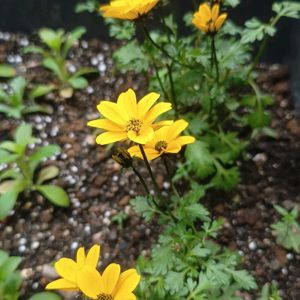 🍀おはようございます🍀 ポンポン咲くゴールドマム ゴールデンイエロー💛 寒さが続く中 ビタミンカラーに 癒されています〜♡(。☌ᴗ☌。) ③ビオラ💜の可愛いお花にも 花ガラ摘みしながらほっこり😊 ④今の楽しみは 種蒔きネモフィラの花芽探し😁 緑の葉っぱにも癒される😊 ⑤昨年の春にお迎えした 八重咲きカリブラコア ダブルミルクレープ🤍 夏越しして短く✂️…していたら 小さな🌱がたくさん出ています