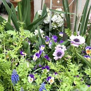 おはようございます☀️ 小さな花壇がモリモリになってきました☘️ ①花壇の様子です ②アネモネポルト💜 ③球根で植えたムスカリ💙 種まきしたネモフィラ🩵 やっと咲いてきました ④チューリップ🌷 毎朝、花壇を見るのも楽しみになってきました🤗