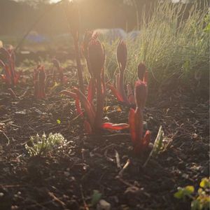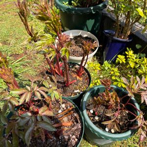 1️⃣ 昨年秋に葉っぱばかり茂り花が咲きにくいシャクヤク ピンクカメオの株を掘り起こし4つに分けました それぞれが蕾を数個ずつ持ち期待大です シャクヤクはなるべく大きな鉢が良いと聞きますが小さな鉢の方が蕾の上がりが良いのはなぜなのか?? 2️⃣3️⃣ シャクヤクの蕾 このまま花が咲くまで成長できるのかな? ひと鉢は近くの花友さんにお嫁に出しました🌸 4️⃣ 原種系のチューリップ ペパーミントスティックは毎年咲いてくれています 今年は先日ムスカリと共に地植えにしたのですが蕾が上がってきました🌷
