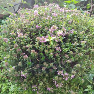 やっと雨が止んで庭に出てみると、 ①タイムが咲き始めています。満開も近い✨️ ②今年もシャクヤク様の季節がやってきます。蕾も上がってきていて元気そうです。たのしみすぎる