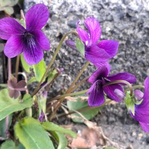 今日のお花 💜スミレ💜道端のコンクリートの隙間から頑張っているスミレ君、 昨日みつけちゃった᛭・.:* .(ღ˘͈︶˘͈ღ) 四枚目✻ 雑だけど小さなリース作ってみました😊