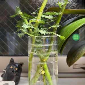 昨日友人宅でおねだりして、ミモザの枝をいただいてきました🤭🪵 ミモザは根付くのが難しいみたい🤔 今日一日水を吸わせて、明日には植えてみよ🪴