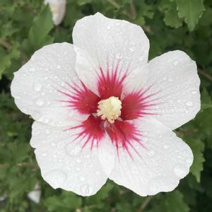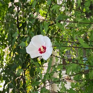 白いムクゲの中に赤いナデシコが❣️ ナデシコ柄のムクゲが咲いてました👀