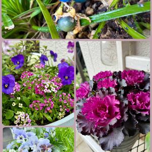 鉢植えにしているリュウノヒゲ コバルトブルーの実を見つけました 🔵💙🔵🌿 少し前に買った 葉牡丹🩷🖤 色合いが気に入ってます。:.゚ஐ⋆* 寄せ植え用に買った ・アリッサム 「アイスクリッサム」 ・クローバー 「ダークデビー」 ・ピンクのリーフの セリ 「フラミンゴ」 まだ植えて間もないので… これから モリモリになるといいです♡