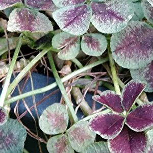 ①②寒さでいい色に💗 寄せ植えを解体した後、とりあえず、とポリポットに押し込めたまま😅 クローバーの鉢植えは、水切れで夏越し失敗したこともあったけれど、このコは3年目です😚 ③④ニューフェイスの黒葉🖤 クローバー ティントって、店頭に並んでいる時は、小葉で可憐で、思わず連れて帰るのだけど、家でしばらく過ごすと、(肥料入れてなくても)大きくたくましい感じになりますよね💪💦、元が強健なんだろうけど もしかして、生産中に矮化剤が使われているのかな?