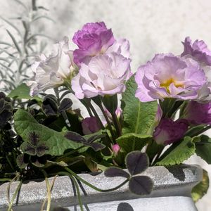 ジュリアンの寄せ植え 黒葉のクローバーが、予想以上に良かったです😊