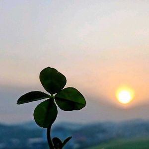 今朝はもう1枚。 我が家でスクスク育っている4つ葉のクローバーஐ⋆*と日の出。 いいことありますように!˶˃ᴗ˂˶