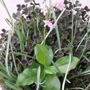 今日のお花〜オキザリス 我が家にて ①ピンクと黄色のミックスです♬ ②過去picから〜 職場にて ③〜ラッキークローバー🍀ピンクのお花が咲いてます♬ ⑤トライアングルラリス〜葉を✂️根出し後地植えにしました♬ どちらも花壇の手前側にびっしり増やそう計画です😆♬