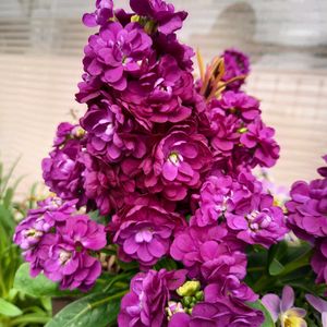 こんにちは🌿 今日のお花 ストック 大好きなお花なので毎年お迎えしています😊 ①ピラミッドみたいに咲いていました💜🩷 ②今咲いてるストック🩷💜 ③もこもこ咲いていました🤍🤍 ④秋遅くに種蒔きした江原ビオラ 蕾1号発見😉 楽しみです ⑤今年も沢山のスイートピーが届きました💐💐💐 良い香りです