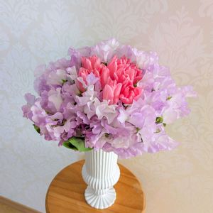 昨日のスイートピーブーケを水換えついでに組み直し チューリップが成長したので今日はチューリップブーケかな お花たっぷりで幸せです♡
