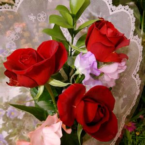 「ミニバラ」と「スイートピー」のブーケ💐 可愛いですね~🤗💕 🏷️真っ赤な火曜日 🏷️あっ火曜日 🏷️可憐な火曜日 🏷️可愛い火曜日の花 に参加させていただきます🙇