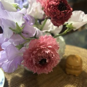 こんにちは🌞 かわいいラナンキュラスを発見💕 この時期切花かわいい子がいっぱいでお花屋さんが賑やかです✨💕 おNewの木彫りチキン添え🐔 チキン倶楽部だけに。。。 🤣🤣🤣🤣🤣🤣🤣🤣