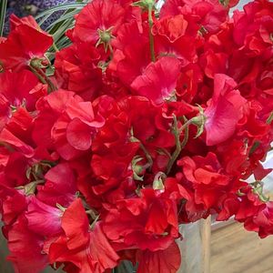 おはようございます。 ただ今帰り道です。 通りすがりの花屋さんにて。 スイートピーです。