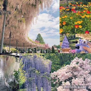 これは4/25の写真。GWよりひと足先にあしかがフラワーパークに行ってきました💐 藤の花のお見事なこと、他の花壇も色ごとに分けて植えていたり、お花たちが皆元気でとても手入れされてる印象でした。桜色のツツジも珍しくて可愛いお色味🩷 藤ソフト🍦も美味しかった😋 また行きたいです。