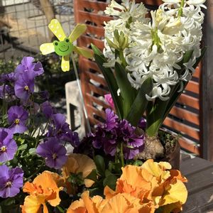 今日のお花 ヒヤシンス ①2月の始め、芽出し球根で夫が買って来た ヒヤシンス 今日はもう満開です♪ ②これに味をしめて?園芸に目覚めた?夫は 昨日ルピナスの苗を買って来て植えました♪ 鉢植えを少なくしようと思ってたけど・・ 増えちゃったな(≧∀≦) ③庭植えのラックス 蕾も膨らんで来ました♪ さて、あなたはエリスだったかな? ④⑤寄せ植えのビオラの中からチューリップが顔を 見せています。 咲いたらどんな感じになるでしょうね〜🎶 ビオラは上の方がパスフリ 渋い黄色が好きだな。 下がブルータイガー タイガーアイの青バージョンのようですが 3株ありそれぞれ表情が違うのが魅力です♡