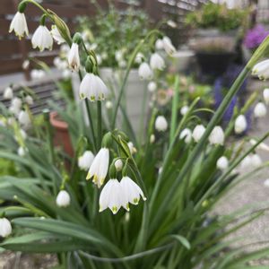 こんにちわ(♡´꒳`)ノ 早くから降り始めました☔ 南東の風🍃が強いです GS今日のお花 🤍スノーフレーク🤍 ❶❷❸玄関への通路沿いに一株だけ植えています🤍 ❹❺同じスズラン型のドウダンツツジも開いて来ました🤍🤍🤍