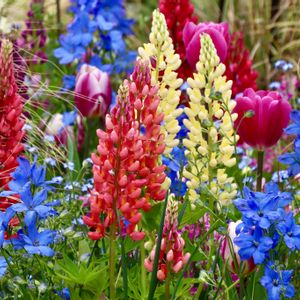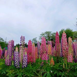 ☆ルピナス☆ マメ科の多年草 花期:4月下旬〜6月 和名:ハウチワマメ(葉団扇豆) 葉の形がうちわに似ていることに由来。 フジに似た花穂を空に向かって立ち上げ、70cmに達する花穂が特徴。花色は紫、ピンク、赤、黄、オレンジ、白など。耐寒性は高いが耐暑性が弱いため、暖地では一年草扱いが一般的。 2026.4.17 通勤路にて📱