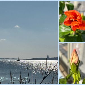 |ョ''ω''〃)おはようございます♪ 昨日は、法要があり知多半島の海岸線を走りました🚙 天気が良く穏やかな海を見る事が出来ました〜⛵️🛥️ 我が家のハイビスカス🌺も頑張っています🥰