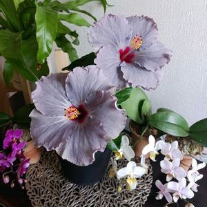 ケイトちゃんがまたダブル咲き🌺🌺 3/12の花の再投稿でも デジャヴでもないよ 胡蝶蘭も色々咲いてるので部屋の中は俄に南国です😂 ケイトちゃんの色は、紫というよりは…何と表現したらいいのかな ②の色が見た目に一番近い感じ