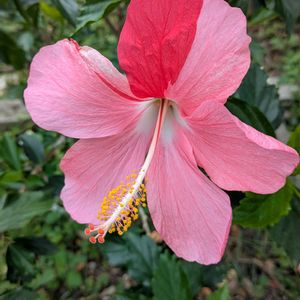 こんにちは〜🤗 今日の天気は曇り☁️ 最高気温24度 最低気温19度 我が家の小さな花壇より🌸🌼🌺 🌿💜🌺ハイビスカス🌺🌿 フラミンゴ🦩 昨夜からの豪雨で今朝もまだ雨が降っていましたが…昼前には雨が止み…徐々に曇り空に変わっていく見込みです☔️➰☁️ 我が家のハイビスカス🌺フラミンゴちゃん🦩昨日はスッキリとした一重咲きだったのに…今朝は豪華な八重咲きに大変身〰️😅✨ これまでも何度か一重と八重を行ったり来たりしていますが…見るたびに『えっ、同じ花!?』とビックリさせられます😂💕 同じ株なのに表情が変わるなんて…まさに「フラミンゴ」ならではの不思議で楽しい現象ですね💕😳😅 この自由奔放な咲き方も…フラミンゴさんの魅力ですね🧡 我が家のハイビスカス🌺フラミンゴ🦩さんが昨日は一重咲きで咲いていましたが⁈💕🌺 今朝は八重咲きで咲いています💕 🪴挿し木っ子3年目⁈のハイビスカス🌺フラミンゴ🦩です➰🤗