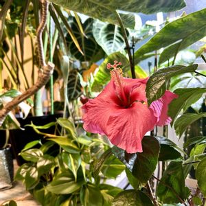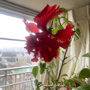 室内に取り込んだハイビスカス🌺 また咲いてくれました✨ 嬉しいから咲かせちゃったけど、 ちっちゃい蕾は取ってしまって 株にお休みしてもらいます🥰 ゆっくり体力つけてね🎶