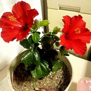 まだ部屋の中にあるハイビスカスが咲きました🌺 この冬も何鉢か枯れてしまいました😓