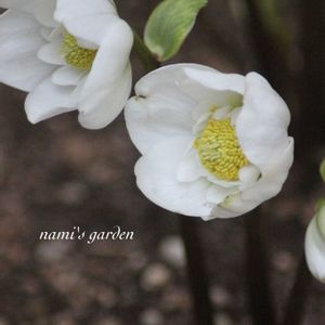 🏷️nami's gardenのクリスマスローズ🤍 [pic①②] お花の中央部分が🌼 刺繍みたいで🪡🧵 好き🫶 pic③④⑤ 新芽が黄色い💛 優しげな子🌿……… 📛ロータス・ブリムストーン💛🍃 モシャモシャなんだけど🤭 この自由奔放さが🌿 好きなんです🥰