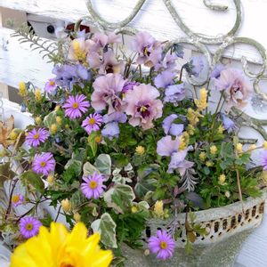 ノスタルジックピンクと名無しのときめきビオラのハンギング