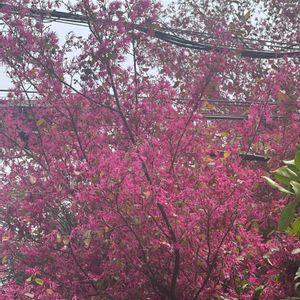 細かく裂けたピンクの花弁 高い花木