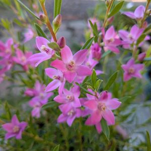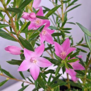 サザンクロスはピンクをよく見掛けますが これは白いサザンクロス ホワイトウィンドです。 オーストラリアの原産で その名の通り 南十字星をイメージする星型の可愛い花が人気です。 開花は5月〜11月頃までですが 四季咲き性があり気温が一定に保たれれば1年中花を咲かせます。🤗✨ オーストラリア東部原産。 ミカン科クロウエア属の常緑低木。