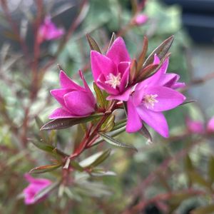 🩷サザンクロス 花期が長いオーストラリア原産の花です。星形のかわいらしい花(ピンクや白)を咲かせ、別名「クロウエア」とも呼ばれています。 ⚫︎ミカン科 クロウエア属 ⚫︎原産 オーストラリア ⚫︎花期 5月〜11月