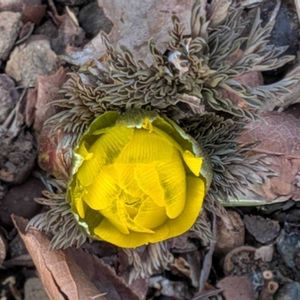 福寿草さん 寒くなった4時半にはしっかり閉じて 大事な雌蕊雄蕊を守ろうとしていました ☘️熱傾性運動 今日は火曜日 大好きなアナベルの枯れ花を入れて 🏷️火曜ベンチ…に🙏♡ 序に可愛い?冬芽と葉痕も… そうこうしているうちに 山並みのシルエットが美しい 夕暮れになりました
