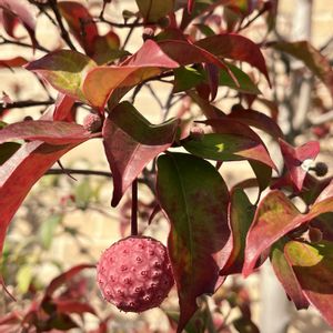 ヤマボウシの実が赤くまん丸で可愛いです🩷