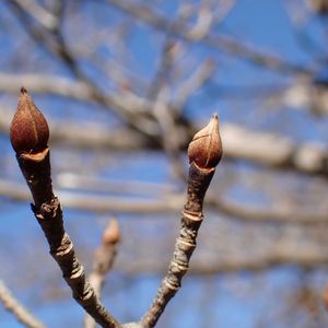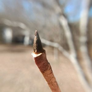 ヤマボウシの冬芽葉痕 ①この冬芽は、花芽です。混芽で、花と葉が出てきます。ぷっくらしていて、2枚の芽鱗が向き合ってついています。真ん中に合わせ目が見えます。短い毛も見えます。 葉痕は、V字形。維管束痕は、3個です。細くて、見えにくいです。 ②これは、葉芽。花芽より、細くて、小さいです。葉痕のところに、横向きのお顔が見えます。 枝は、古い葉痕と芽鱗痕が連なっていました。 ③高い木です。ここには、たくさんのヤマボウシの木があって、枝が垂れ下がっている木もあるので、簡単に観察できました。 ④5月に見た花。ピンクのヤマボウシです。 ⑤10月に見た実。たわわになっていました。 ①②③冬芽葉痕 1.17 ④ 花 2023.5.9 ⑤ 実 2025.10.7 高尾山にて (冬芽ハンドブックで調べました。)