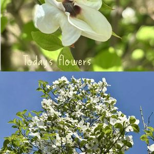 🏷️今日のお花 ハナミズキ🤍青空に映えています☀️ヤマボウシといつも迷っちゃう(^^; 2枚目 寄せ植えしていた多肉の鉢を解体して同サイズの子達を植え替えました😊左上のオーレアさんはどうなるのかしら……🤔 3枚目 花壇一面のニゲラ💙🤍🩷咲き始めました🎶 負けないようにオルレアも〜✌️ クレマチスは昨年花数が少なかったので肥料をたくさん施した結果が出てるようです👍 イキシアもピンクと黄色が咲いてます( *¯ ꒳¯*)ウフフ♡ 4枚目 日帰り出張で大分県別府市へ❣️ ちゃんと露天風呂には入ってきました♨️ 湯船の中から眺めた新緑の山もみじ💚目に染みました(*´つ_⊂`)