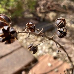 雪解け庭のお掃除 ╰(*´︶`*)╯♡ サルスベリの枝が折れちゃって でも近くでみると素敵