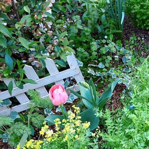 チューリップꕤ ① 2月にHCで芽出し球根をgetしたのが開花𖤣𖥧🐝*。゚ サルスベリꕤ ②陽当たり良すぎて若木が枯れたので暑さに強そうなのに植え替え おまけꕤ 冬眠から覚めた🦎カナヘビ♡