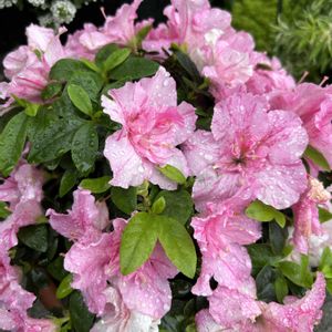 アザレアが満開で美しいです。 ドドナエア パープレアは小さなお花が終わり鞘への変化を始めました。