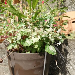 鉢植え汚くってお恥ずかしい 解体して組み直した寄せ植えパート3 数珠珊瑚が好きです 来年はもう少しこぼれ種が発芽してくれるといいな
