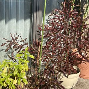 おはようございます。 雨です。 庭鉢の配置換えしました。 コリウス、葉が小さいので、根詰まりしてそうですが、このままで頑張ってもらいます。 イタリアカサマツ、テーブルヤシは、植え替えをずーとしてません(^_^;)💦 ドドナエアも植え替え必要そう。