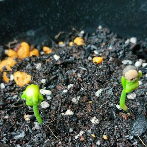 ハート模様の種〜 芽がでました ちょこっとでてる🌱 愛おしいフウセンカズラ