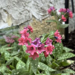 午前中 数時間しか日が当たらない東側のDIY花壇に植えてある プルモナリアさん♡ "シュリンプオンザバービー" 4年目の開花です😊 お花情報 ■ ムラサキ科 ■ 学 名 Pulmonaria 'Shrimps ontheBarbie' ■ 別 名 :ラングワート(英名) など ■ 花 期 : 春 ■ 草 丈 : 15~cm前後(生育後・花丈も含む) ■ 株はり : 40~60cm前後(生育後・環境差がある) ■ 耐寒性 : 強い(-15℃~-25℃ ) ■ 耐暑性 : 普通(暖地では夏に風とおし、水はけよく) ■ 日 照 : 半日陰 ■ 原産地 : ヨーロッパ(原種の主な自生地) ○新しいハイブリッドのプルモナリアらしく従来種よりもピンクが濃く、花つきがとても良い! ○姿はコンパクトで、春には株を覆うほどに花をたくさん咲かせる ○花後はシルバーのブロッチがユニークな葉を秋まで茂らせる ✼••┈┈┈┈••✼••┈┈┈┈••✼ 葉っぱが印象的でネーミングも気になり お迎えして4回目の春☘️ 株を覆い尽くすほど咲くまでにはまだ至らず😅 株の中心部がまだ蕾 周りからやっとお花が立ち上がってきたので 忘れないうちにpost😂 エビのような花色に由来するネーミングらしくアメリカ作出の品種! 品種名の由来に思わず納得😂