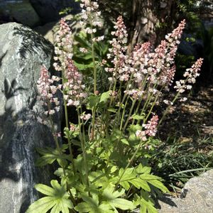 地植え組🌱宿根草(多年草) ティアレアさん♡お花も沢山😊 2年目、モリモリ大きくなりました❣️ ヒューケラさん達も、無事に冬を越して、美しくなってまいりました🤗 アジュガさんのお花も続々と咲いてきて💙 緑とお花が楽しめる、良い季節ですねー♪