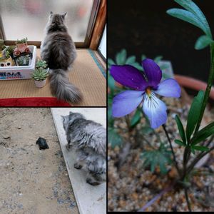 あれから一年( ᴗ_ᴗ̩̩ ) 思い出すと、ウルウル😢 トリアシスミレ💜ネットで、お取り寄せ 葉が鳥の足のようなスミレ可愛い🥰 モコ、生前の姿で、再投稿᯽𖧷⁺.˖* こぼれ種からの忘れな草💜💙 風が強いです 黄砂に注意ですね 🏷ニャンニャン祭り🏷春のウキウキガーデン