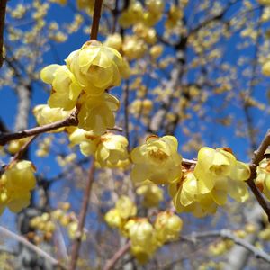 おはようございます☀ 今日のお花 ロウバイ ①こちらは以前のpic(郷土の森) ②昨日見たロウバイ…昨日投稿したばかりでした😉 ③④散歩中に見た紅白の南天 ナンテン…どこもいっぱい重そうに実をつけていました🔴⚪️🔴⚪️🔴 ⑤葉が落ちた後の赤い実…ガマズミ? でしょうか? 鳥も食べないのかな🤔 空を見上げたらちょっと絵になりそうでパシャリ📷️