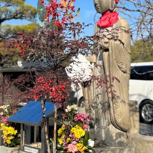 💙♡ͥ︎ ♡ͦ︎ ♡ͮ︎ ♡ͤ︎空と植物♡ͥ︎ ♡ͦ︎ ♡ͮ︎ ♡ͤ︎❤️ Good Morning♪︎(。・_・。)ゞ ❤️先週末〜梅のお花の開花状況を確認に東寺へ〜テクテク👟♪ ❤️①お地蔵さんの赤いお帽子とナンテンの赤い実がとってもキュート😍 💖②ピンク色のサザンカさん|´・д・)σ 発見! 🤍③先週末の東寺ではウメのお花はまだまだෆ̈これから〜っという感じ〜👀✨ 🦆④とってもカワイイかものカップル👫 頭隠して尻隠さず〜(艸*>∀︎<*∞︎)アハッ