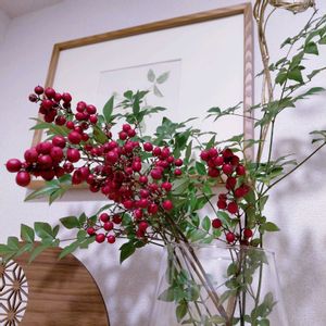 お正月用に買った(12/26)南天が、まだ綺麗。こんなに長持ちするんですね。紅色って言うんですかね?赤の中でも私が一番好きな色になってます。 ヽ(*´∀`*)ノ