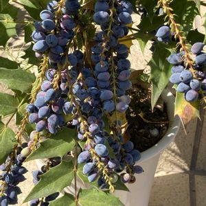 ヒイラギナンテンの実🫐 見た目はブルーベリーみたいで美味しそうだけど、食べるものではないらしいので伐採✂️ 重たそうに枝が垂れ下がってしまったので(2枚目)この後剪定してスッキリさせました🌲 また冬に綺麗な黄色い花をたくさん咲かせて貰うために💛